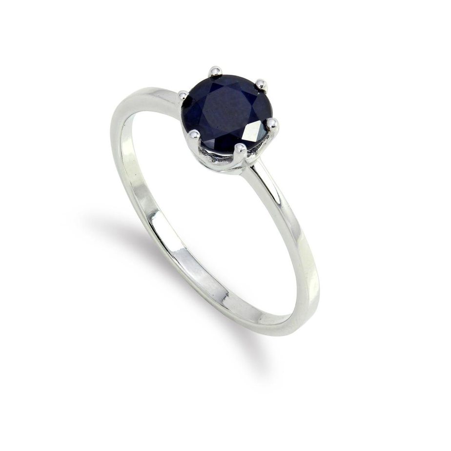 Sterling Silver & 6mm Round Sapphire Gemstone Ring