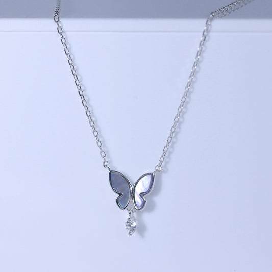 Regular price£0.00Sterling Silver Mother of Pearl Butterfly CZ Necklace 18 Inch