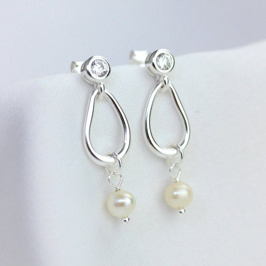 Regular price£0.00Sterling Silver Drop Freshwater Pearl & CZ Dangle Earrings