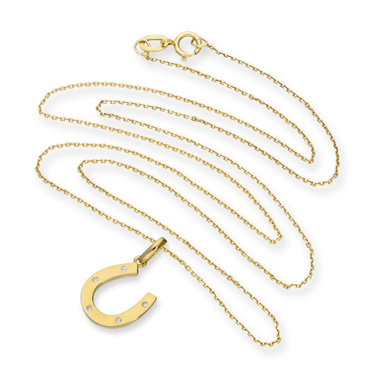 9ct Gold & Clear CZ Crystal Horseshoe Pendant Necklace