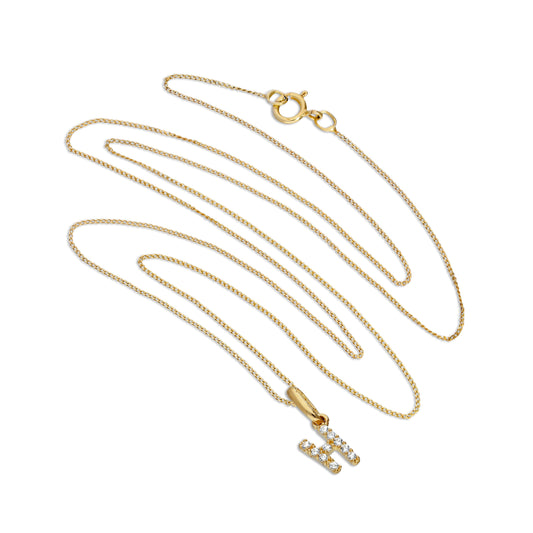 9ct Gold & Clear CZ Crystal Hanging Script Alphabet Letter H Pendant on 16 - 20 Inches Chain