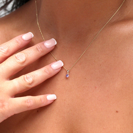 Regular price£0.009ct Gold 5mm Round Claw Amethyst CZ Necklace 16 - 20 Inches