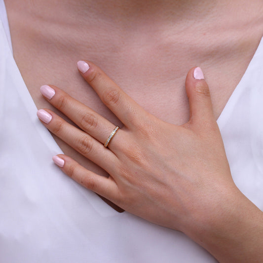 Regular price£0.009ct Gold & Clear CZ Crystal Half Eternity Stacking Ring Size I-U