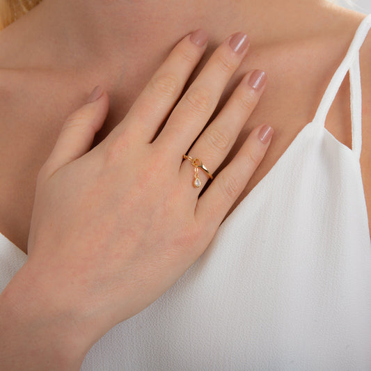 Regular price£0.00Gold Plated Sterling Silver Teardrop Clear CZ Chain Drop Dangle Adjustable Ring