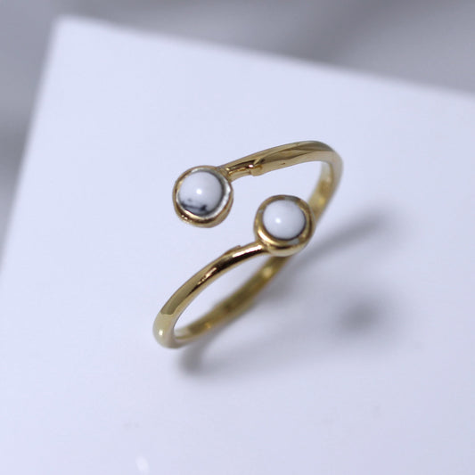 Gold Plated Sterling Silver & Faux Howlite Adjustable Ring
