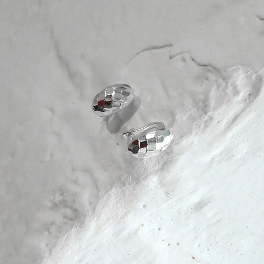 Sterling Silver Beaded Chunky Ovate Link Hoop Earrings
