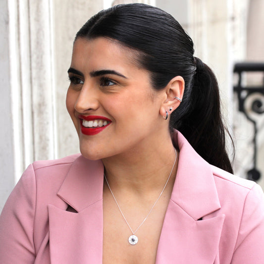 Regular price£0.00Sterling Silver Flower Daisy Oxidised Open Stud Hoop Earrings