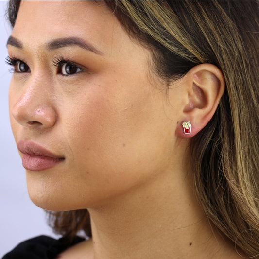 Sterling Silver Enamel French Fries Stud Earrings
