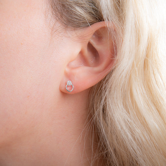 Sterling Silver & CZ Crystal Open Ring Cluster Stud Earrings
