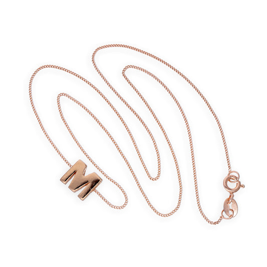 Rose Gold Plated Sterling Silver Letter M Pendant Necklace 14 - 32 Inches