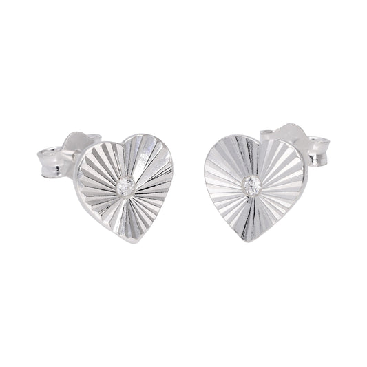 Regular price£0.00Sterling Silver Starburst Flat Heart Diamond Cut Clear CZ Stud Earrings
