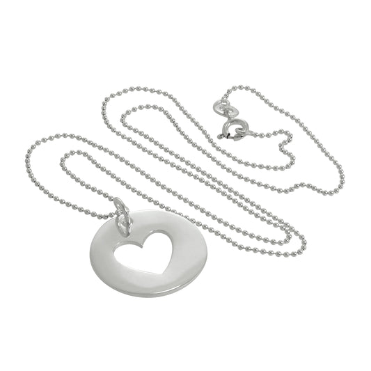 Regular price£0.00Large Sterling Silver Cut Out Heart Disc Pendant Necklace 14 - 22 Inches