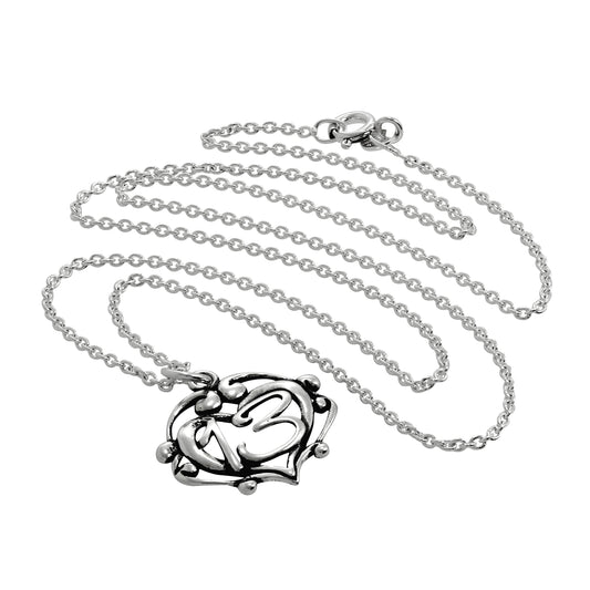 Sterling Silver Open Love Heart Pendant Necklace with Flower 16 -22 Inches