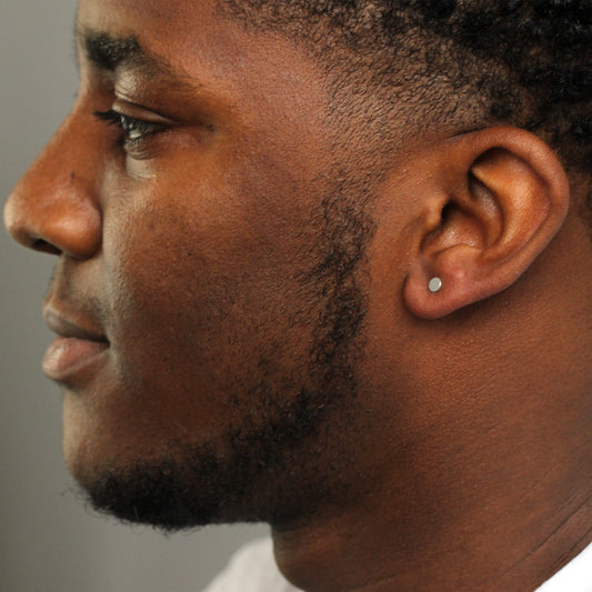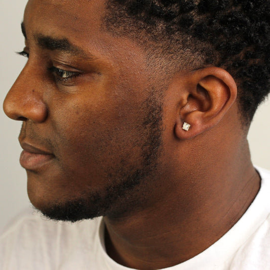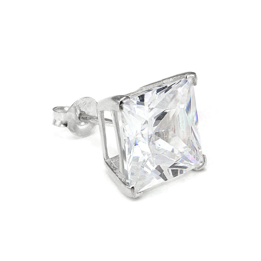 Sterling Silver Square CZ Crystal Mens Single Ear Stud - 4 -10mm