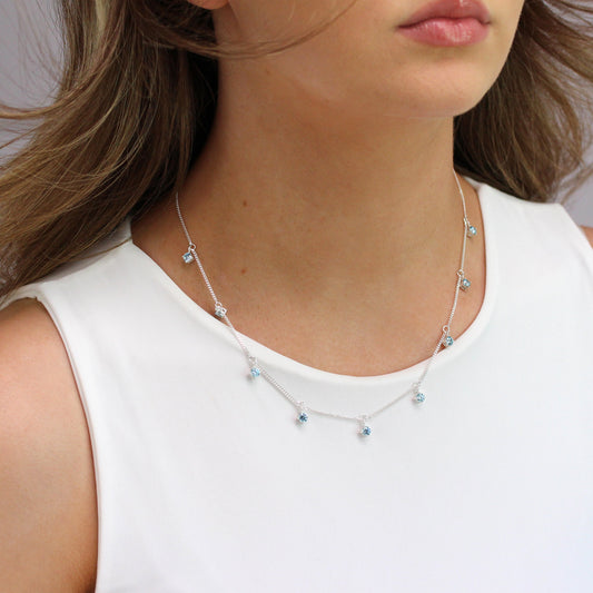 Regular price£0.00Sterling Silver Multi Aquamarine CZ Necklace 16+2 Inches