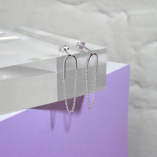 Regular price£0.00Sterling Silver Curve Bar Chain Stud Earrings