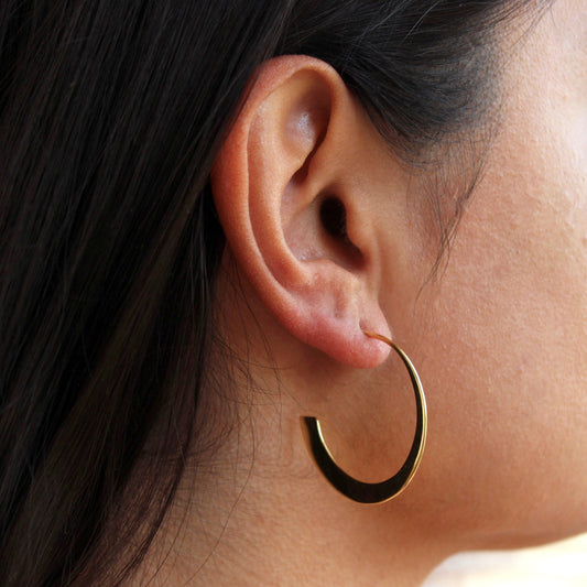 Gold Plated Sterling Silver Flat Tapered Open Hoop Stud Earrings