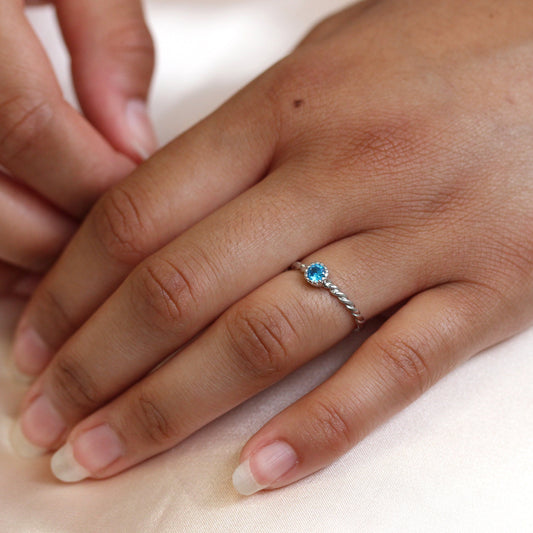 Regular price£0.00Sterling Silver & Aquamarine CZ Crystal March Birthstone Twisted Rope Ring I - U