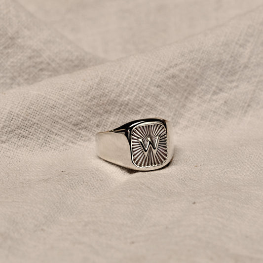 Regular price£0.00Personalised Sterling Silver Square Starburst Initial Signet Ring Size M - Z+1