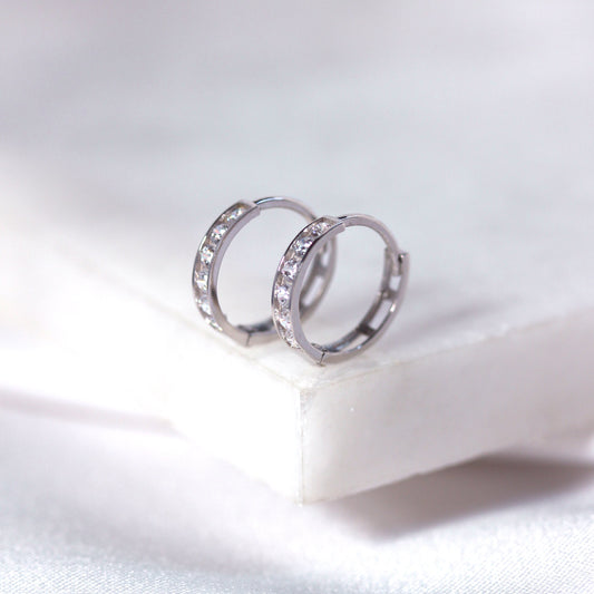 Regular price£0.009ct White Gold Channel Set CZ 12mm Huggie Hoop Earrings