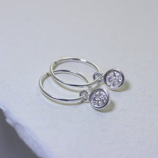 Regular price£0.00Sterling Silver Clear CZ Pave Round Charm Hoop 12mm Earrings