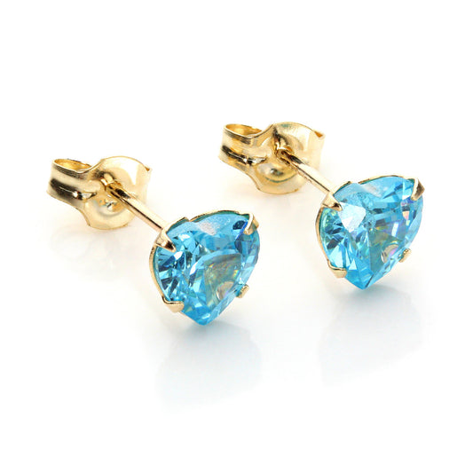 9ct Yellow Gold CZ 5mm Heart Stud Earrings
