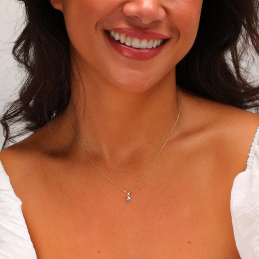 Regular price£0.009ct Gold 5mm Round Claw Aquamarine CZ Necklace 16 - 20 Inches