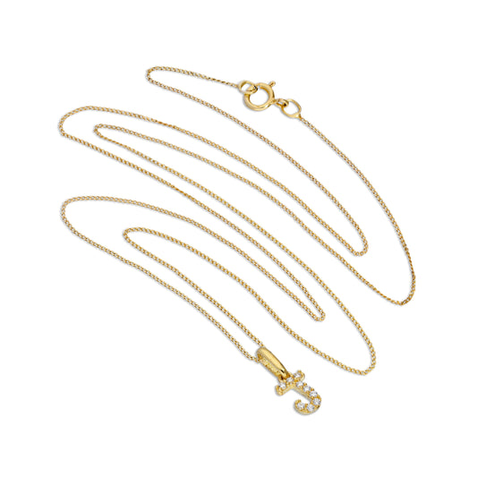 Regular price£0.009ct Gold & Clear CZ Crystal Hanging Script Alphabet Letter J Pendant on 16 - 20 Inches Chain
