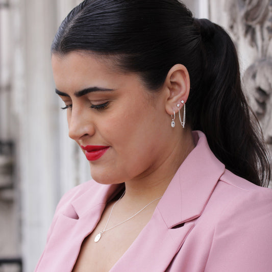 Regular price£0.00Sterling Silver 22mm Hoop Earrings with Chevron Cut Ball Beads