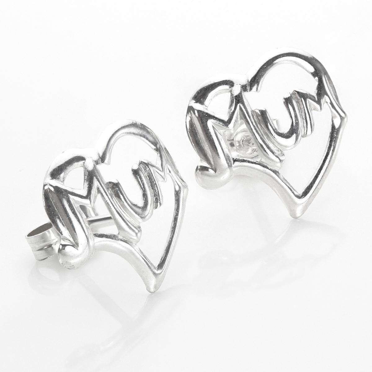 Sterling Silver Mum Heart Stud Earrings