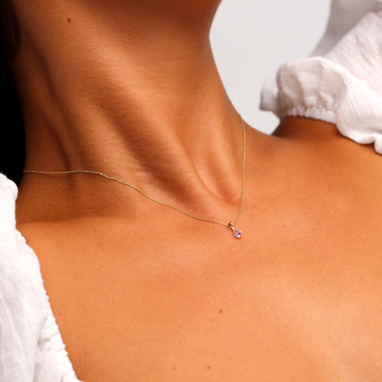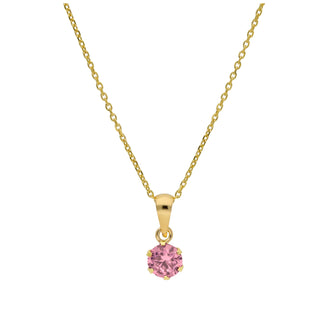 9ct Gold 5mm Round Claw Tourmaline CZ Necklace 16 - 20 Inches