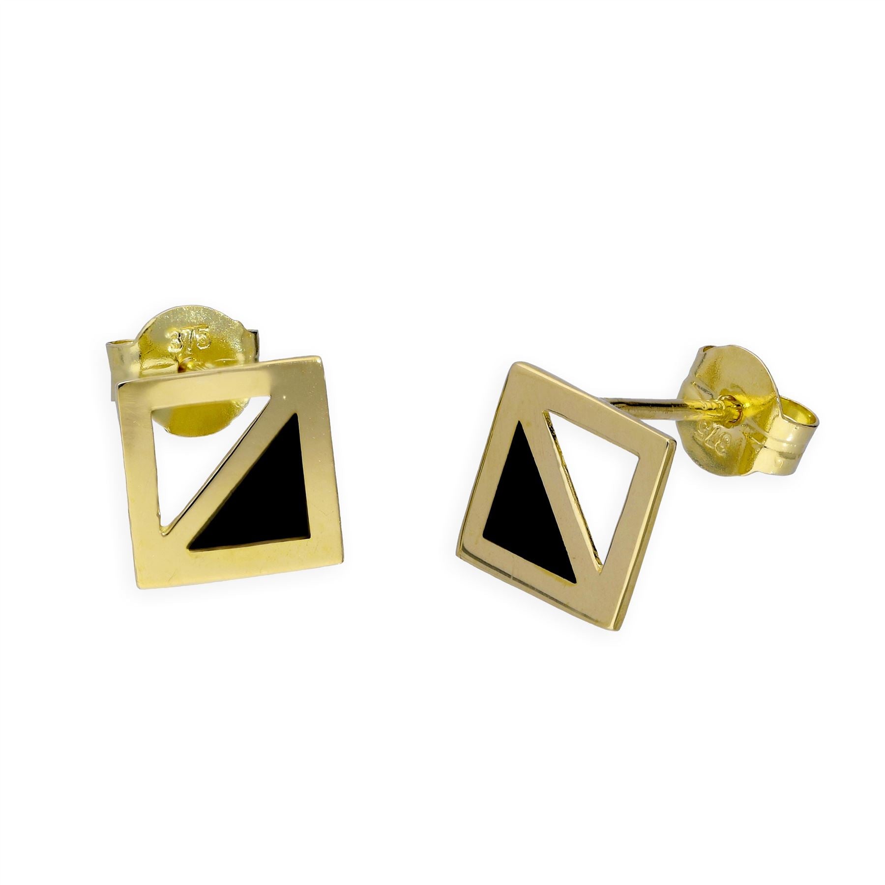 9ct Gold & Black Enamel Two Tone Circle Stud Earrings