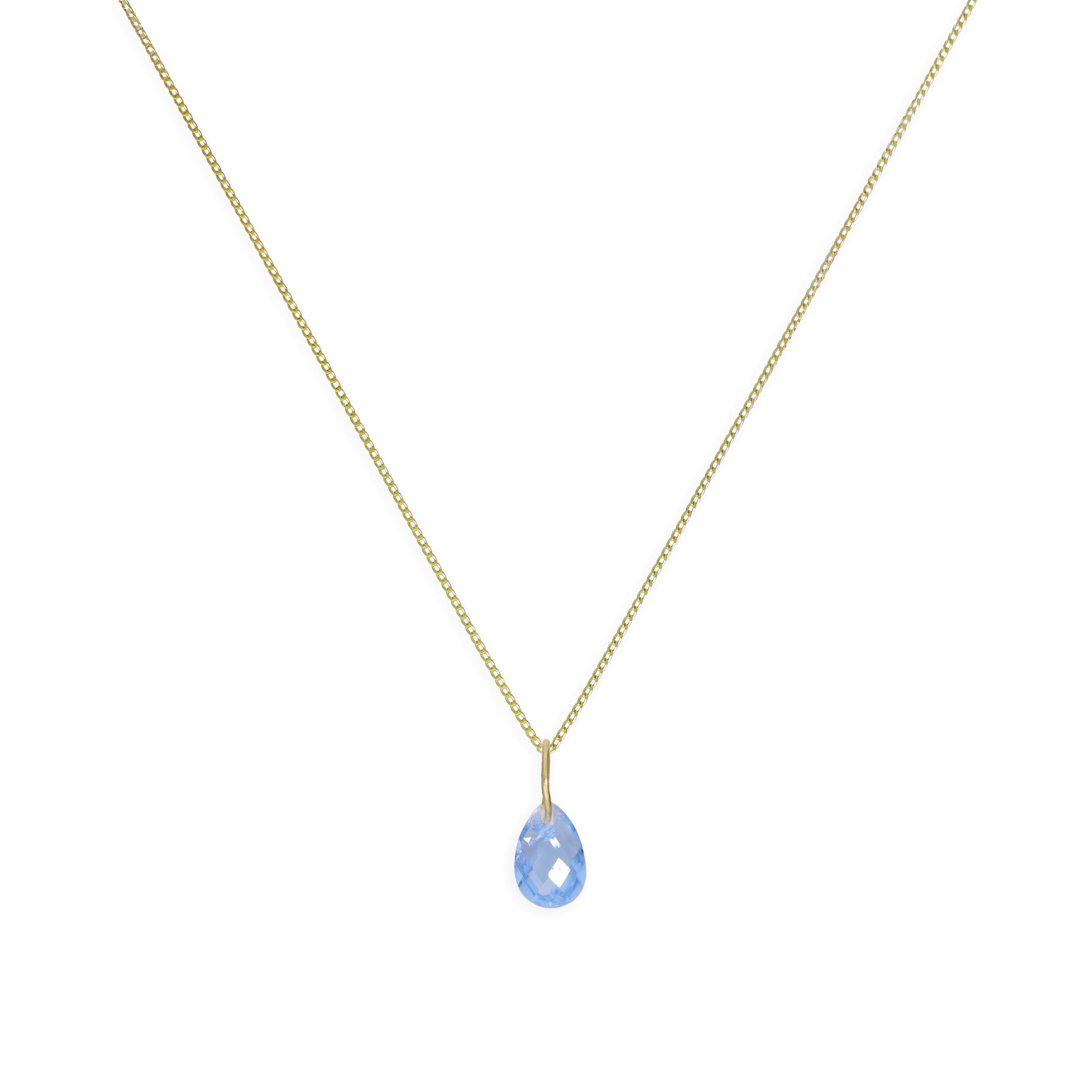 9ct Gold & Blue Teardrop Pendant Necklace 16 - 20 Inches