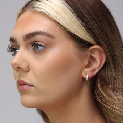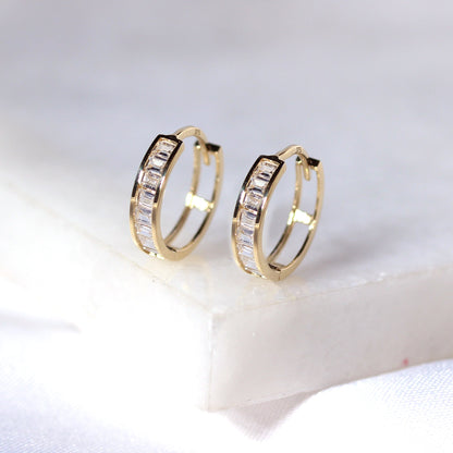 9ct Gold Princess CZ Channel Set 12mm Huggie Hoop Earrings
