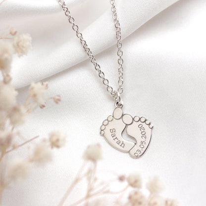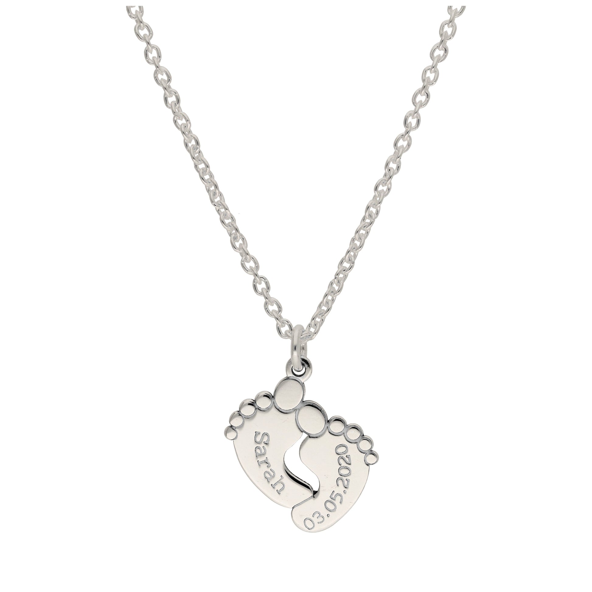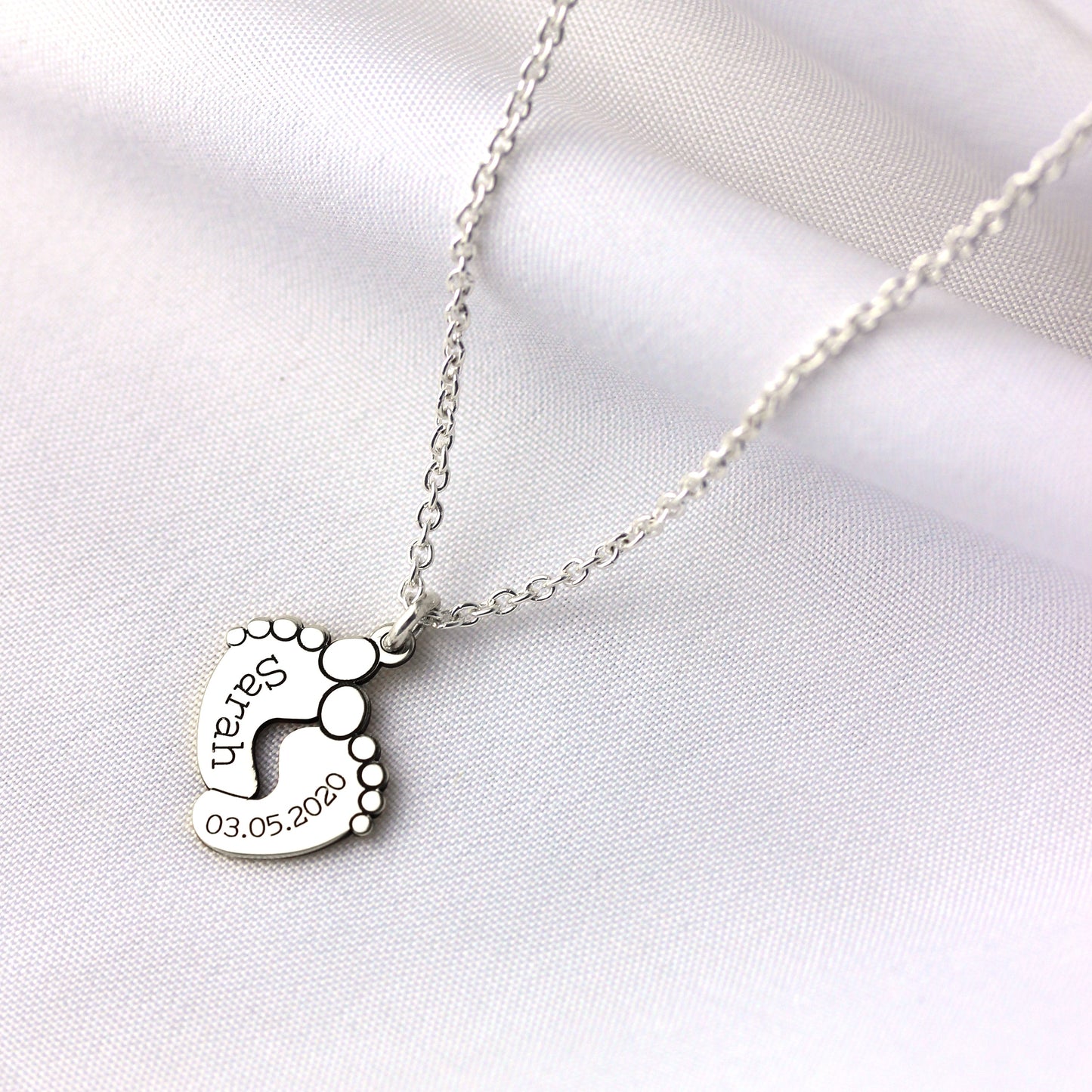 Bespoke Sterling Silver Baby Feet Name Necklace 16 - 24 Inch