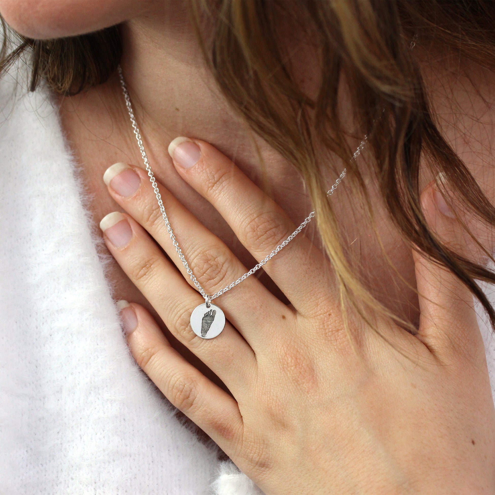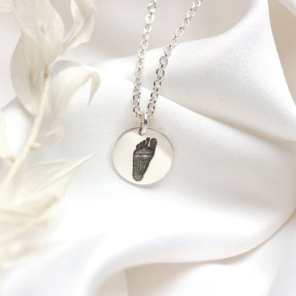 Bespoke Sterling Silver Footprint Round Necklace 16 - 24 Inches