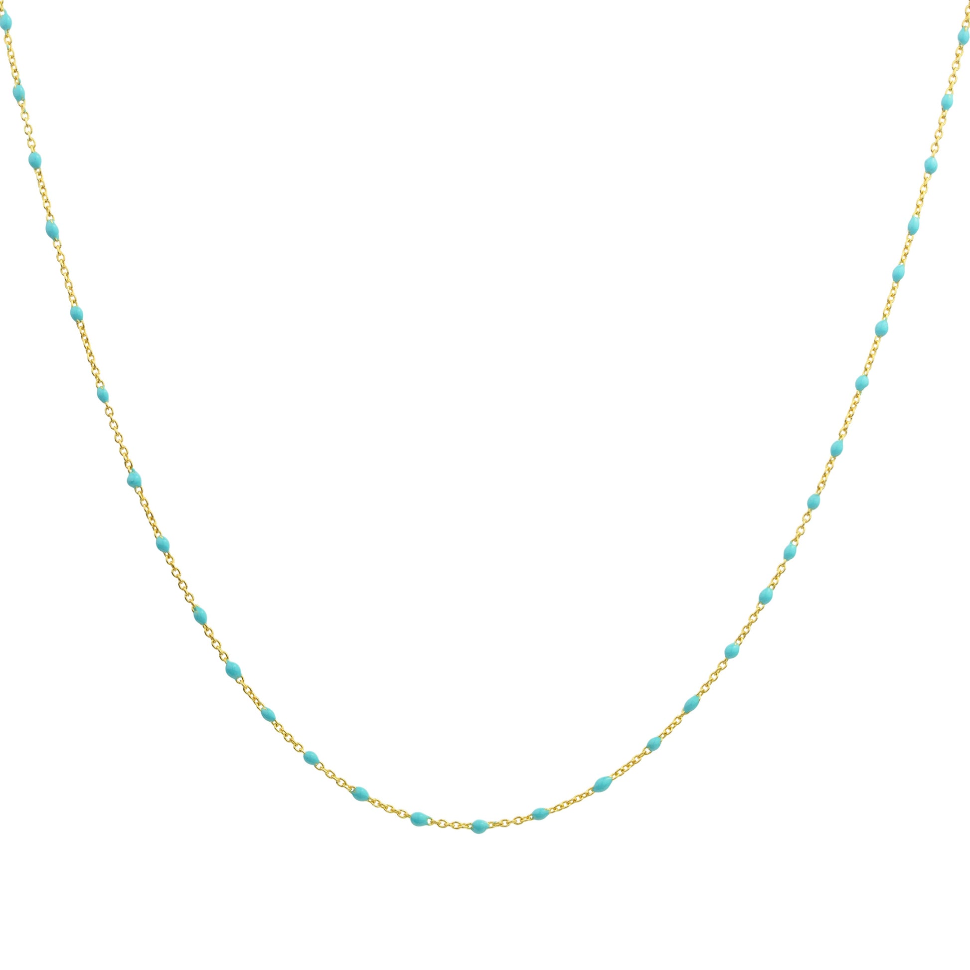 Fine Gold Plated Sterling Silver & Blue Enamel Confetti Chain Necklace - 16 Inches
