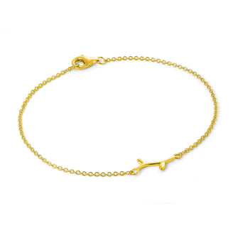 Pretty and delicate, this beautiful gold plated sterling silver bracelet features a little tree branch design in the centre which measures 6mm x 16mm x 1mm. 7 inches in length, the lobster clip makes it easy to fasten and the bracelet weighs just 1g so it feels light and comfortable to wear.