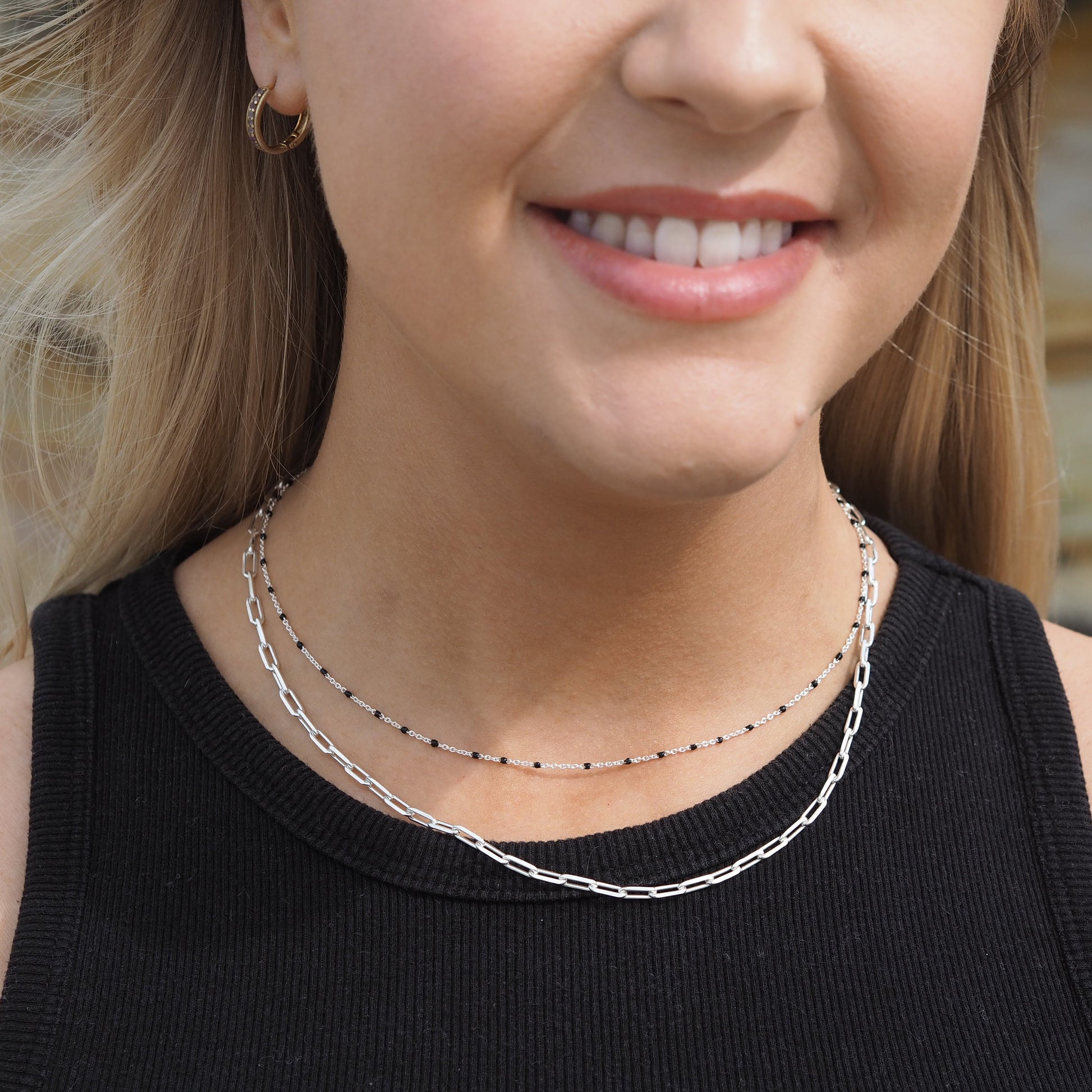 Fine Sterling Silver & Black Enamel Confetti Chain Necklace - 16 Inches
