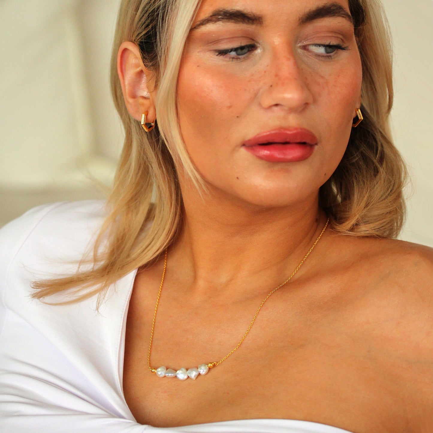 Gold Plated Sterling Silver 5 Freshwater Baroque Pearl Necklace 20+2"