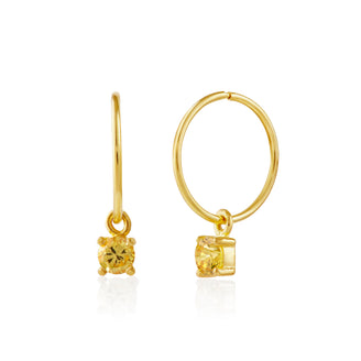 Gold Plated Sterling Silver Citrine CZ 12mm Charm Hoop Earrings