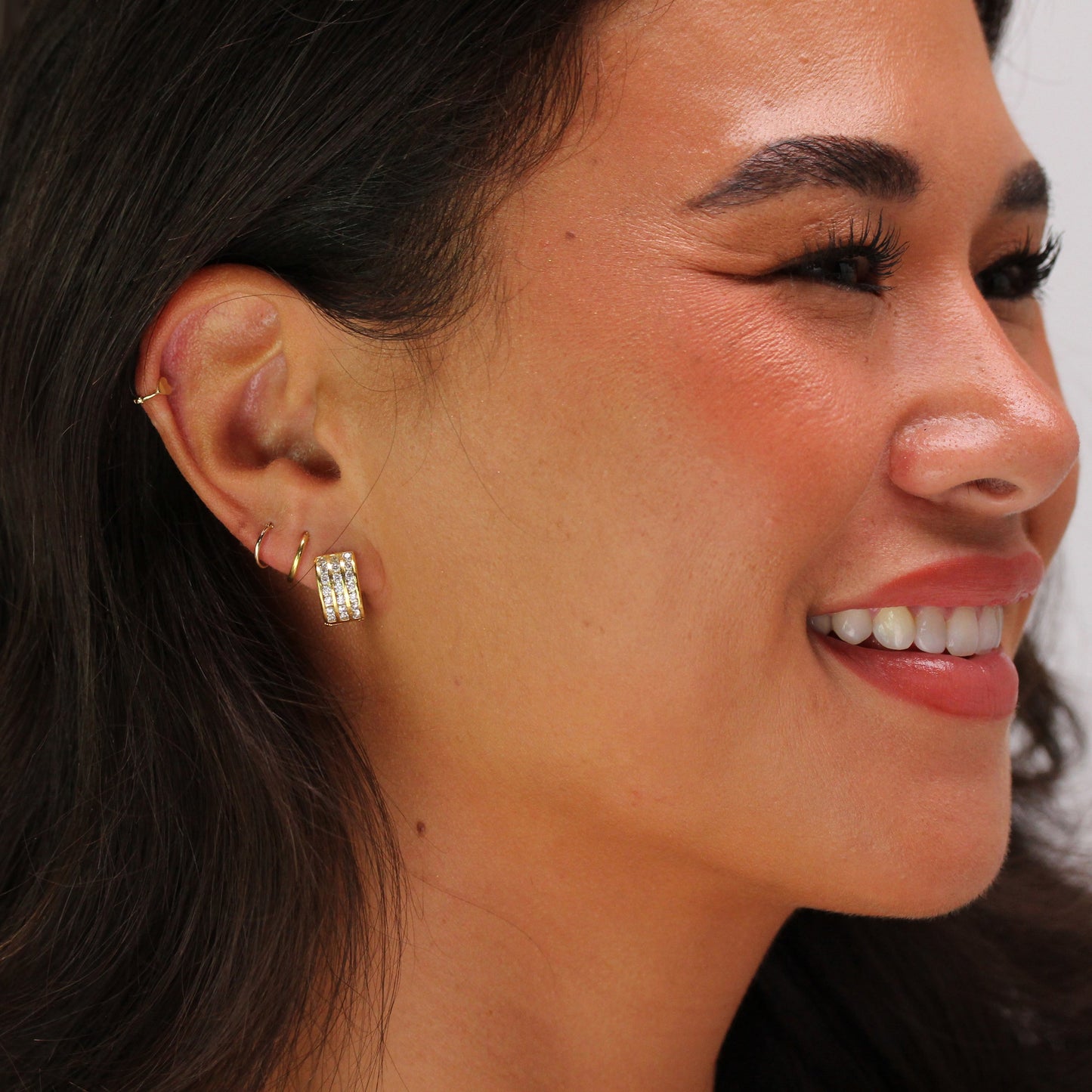 Gold Plated Sterling Silver CZ Triple Set Huggie Earrings