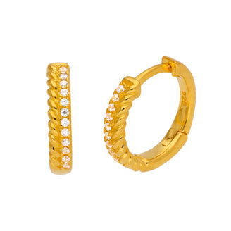 Gold Plated Sterling Silver Double Twist Pave CZ Huggie Hoop Earrings