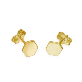 Gold Plated Sterling Silver Hexagon Stud Earrings