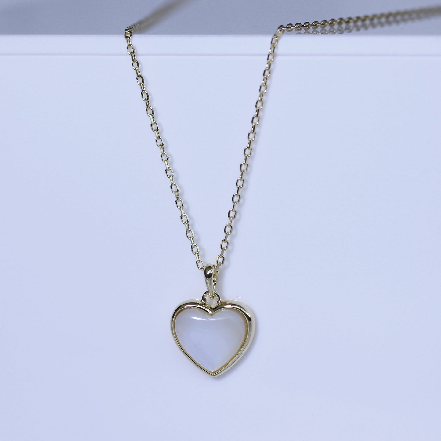 Gold Plated Sterling Silver Mother of Pearl Heart Necklace