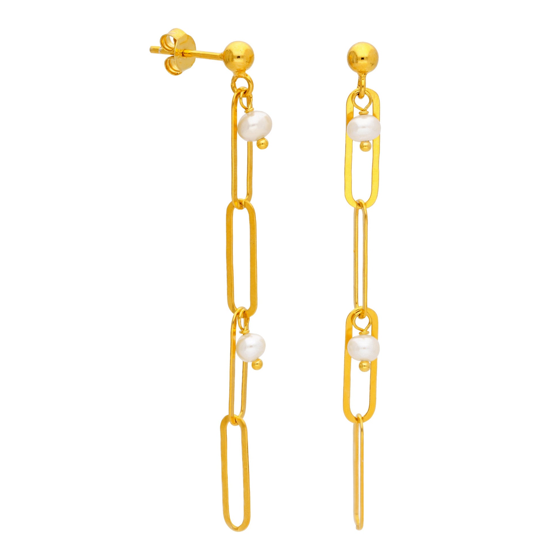 Gold Plated Sterling Silver Pearl Drop Link Stud Earrings