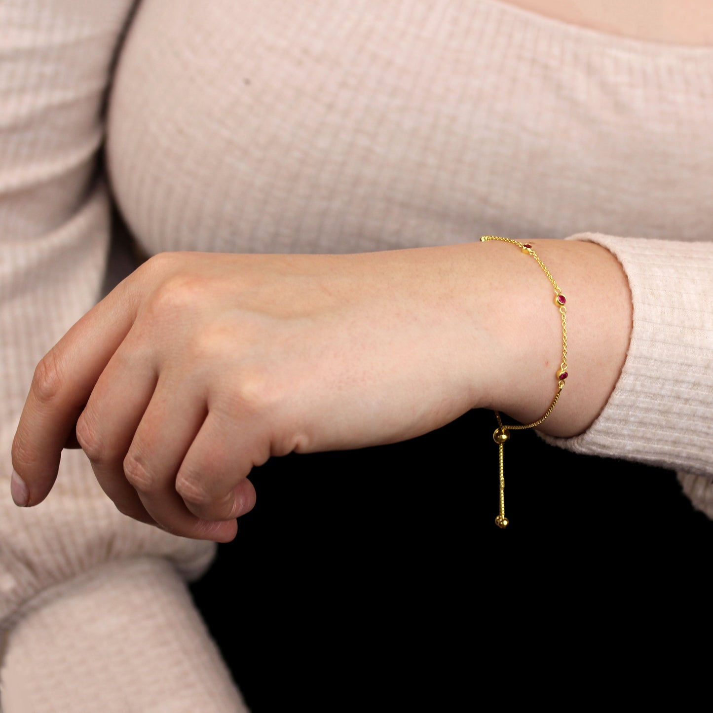 Gold Plated Sterling Silver Ruby CZ Adjustable Bracelet