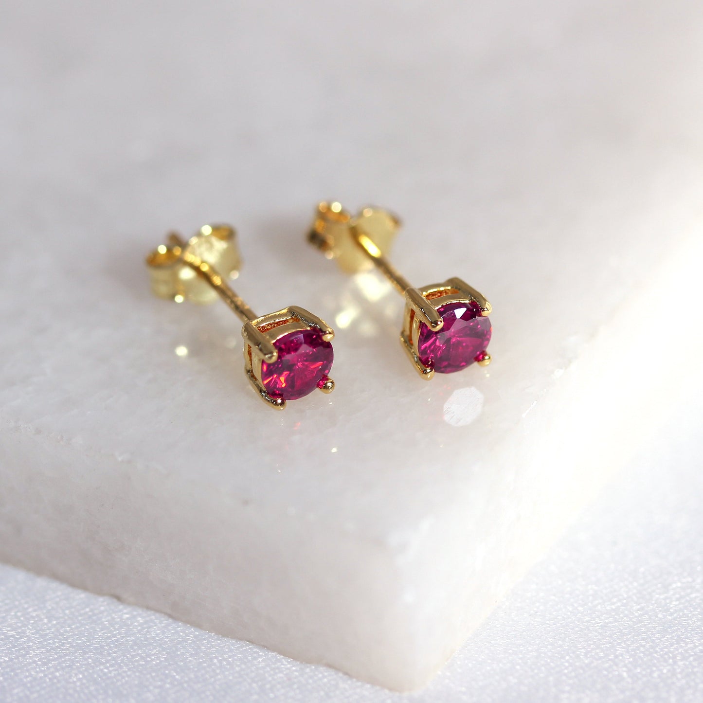 Gold Plated Sterling Silver Ruby CZ July 4mm Stud Earrings