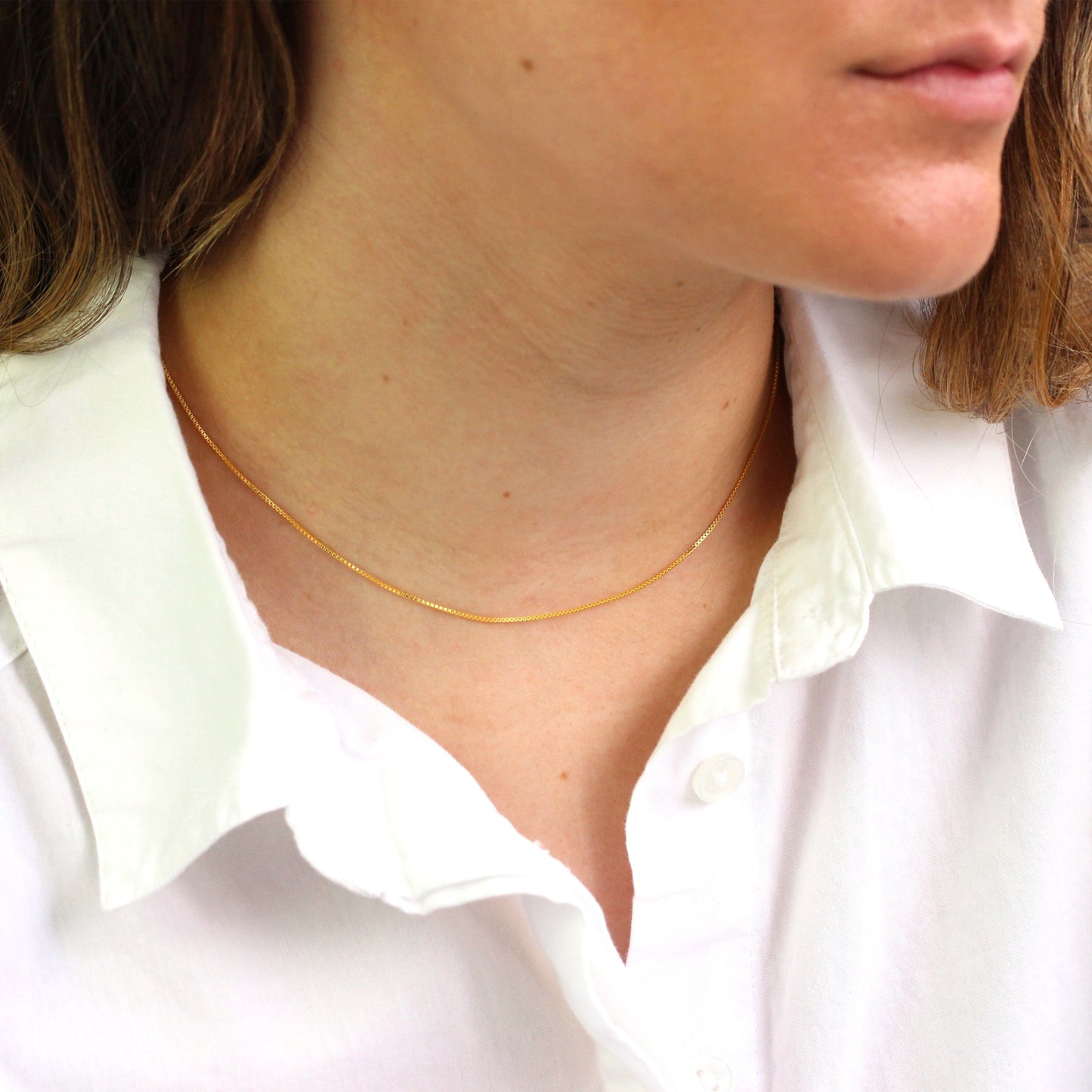 Gold Plated Sterling Silver Slider Clasp Box Chain up to 24 Inches