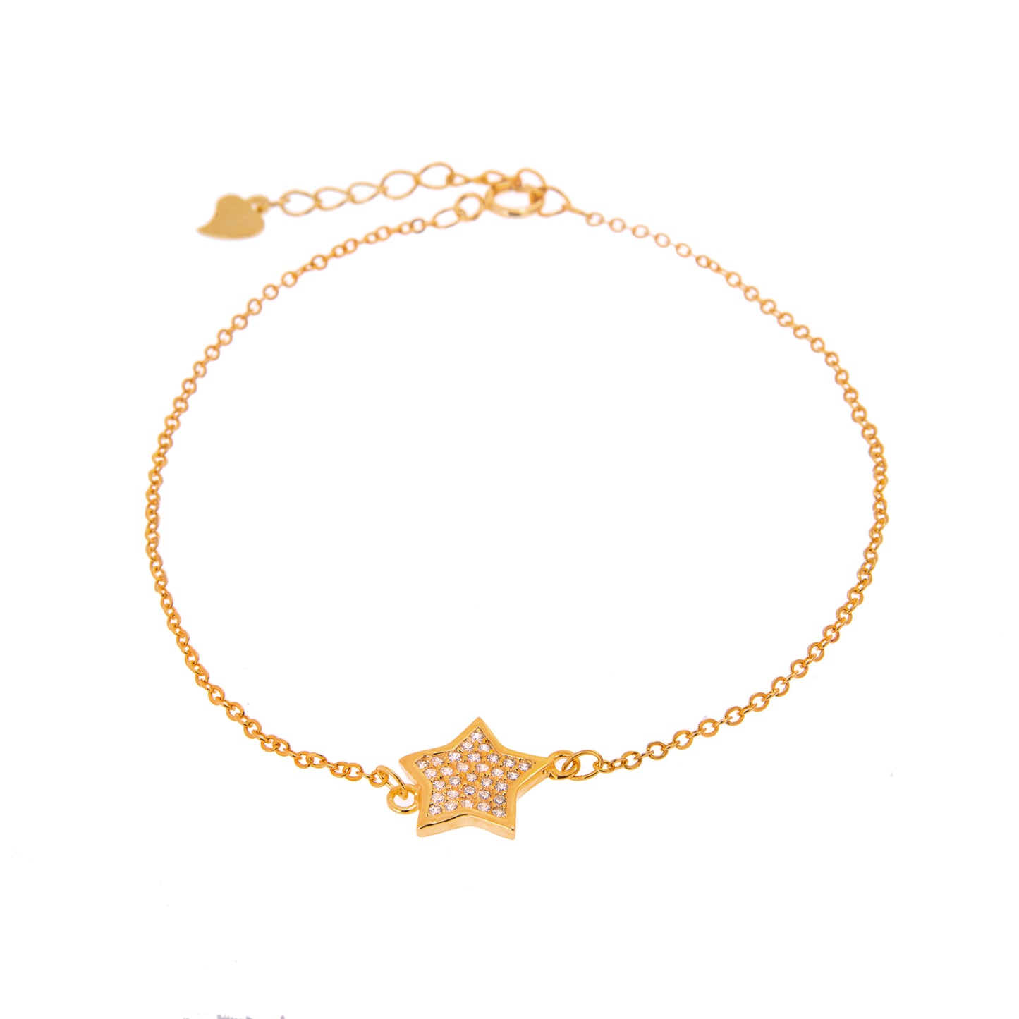 Gold Plated Sterling Silver Star Clear CZ Pave Adjustable Bracelet